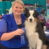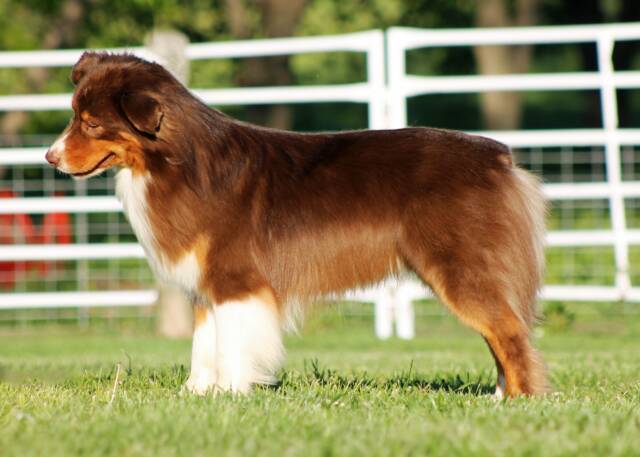 Smurf was our first Bred By pup. He grew into the most amazing boy! He has a ton of bone and size and a gorgeous hair coat. He has quite the following fan club. He is well know around the Reining horse world community as a charismatic, outgoing, well mannered lovable boy. He has produced AKC/ASCA ptd pups, titled Trick, Rally, Agility, Therapy, Dock diving and Alert dogs all over the world. His show career was ended early at no fault of his own, but he continues to be a well loved ranch dog. He occasionally gets to sire a litter. We have kept back a few of his daughters to carry on his legacy.